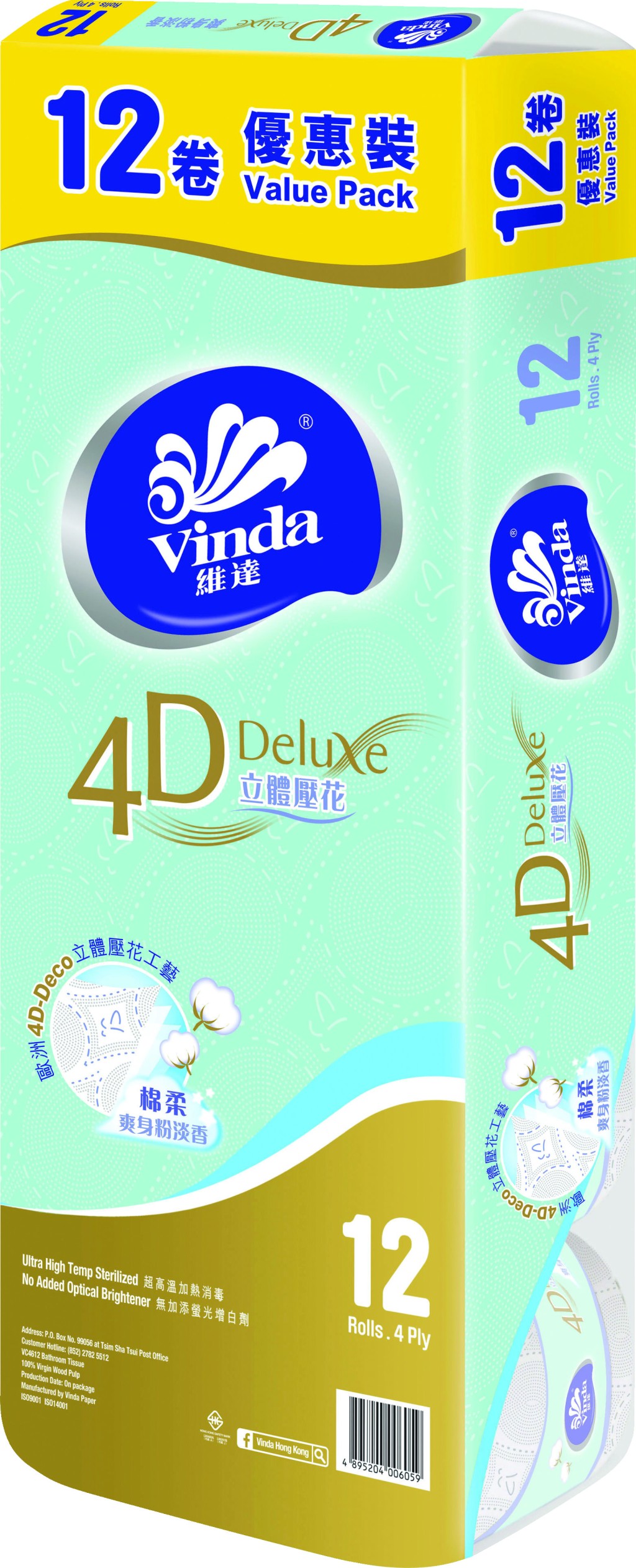 ▲维达4D立体压花卫生纸(各款) 10+2 加送装 优惠期:即日至16/1、优惠价:$59.9/2 (标准价: $38 )(图片来源:惠康)