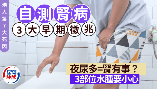 【肾病症状】肾病是香港第7大致命疾病。夜尿多,可能是肾脏出问题?有医生教分辨肾病早期3大征兆,并指出若身体3个部位水肿,也有机会是肾病警号!到底有何方法判断?