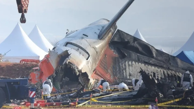 ▲1月2日,韩国调查人员正在搜查失事飞机 央视新闻报道配图