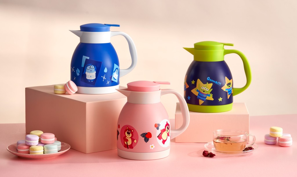 今个新年3位Disney.Pixar经典电影《玩转脑朋友》和《反斗奇兵》的超人气角色:阿愁、劳苏及三眼仔,将会化身成实用度满分的“双层真空暖暖壶”,性格内向的阿愁暖暖壶采用标志性的深蓝色,而可爱度满分的劳苏就用上桃红色,而人见人爱的三眼仔当然上蓝、绿色为主调,粉丝们更可自选心水款式!