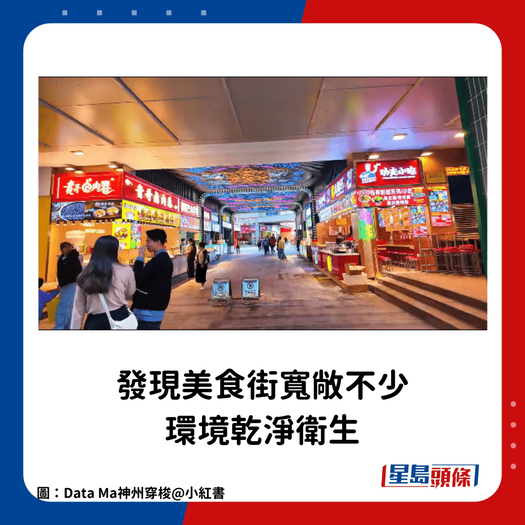 美食方面,由网民上载的片段可见美食街云集多款扫街美食,如转转小火锅、手摇饮品、四川麻辣串烧、烤生蚝等,网民指虽然美食选择大同小异,但是小店数量大减,比以前少不止三分之二,现时整个美食街区域只剩下不足一百间店铺,直指“感觉现在的商店也没以前那么多。突然觉得没以前那么好逛好吃了。”、“我都不知选吃啥了”。