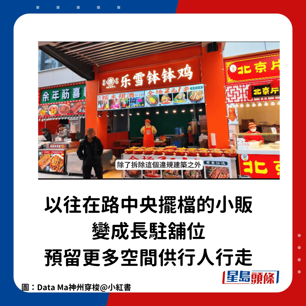 东门町美食街于今年1月1日元旦重新开放,有内地网民直击现场环境,发现美食街宽敞不少,环境干净卫生,以往在路中央摆档的小贩变成长驻铺位,预留更多空间供行人行走,而且美食街由有盖变露天,令到空间感大增,比起以前人多挤迫又嘈杂的景象相差甚远,网民赞“没有以前嘈杂,烧烤味也没有那么重了。”