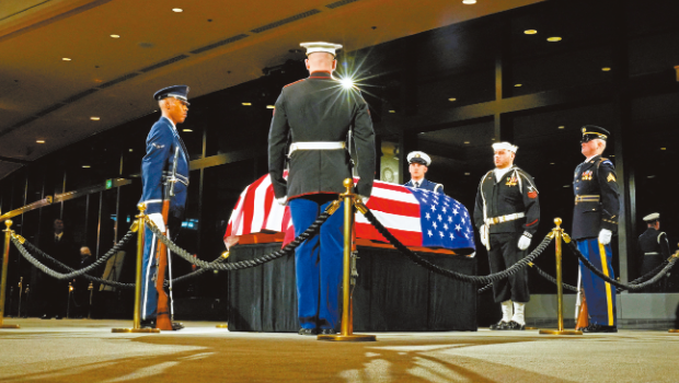 ▲前总统卡特历时6天的国葬活动正式开始,其灵柩已移往亚特兰大卡特中心,停放当地供民众瞻仰,接着会转送首都华盛顿,最后运返家乡入土为安。 美联社