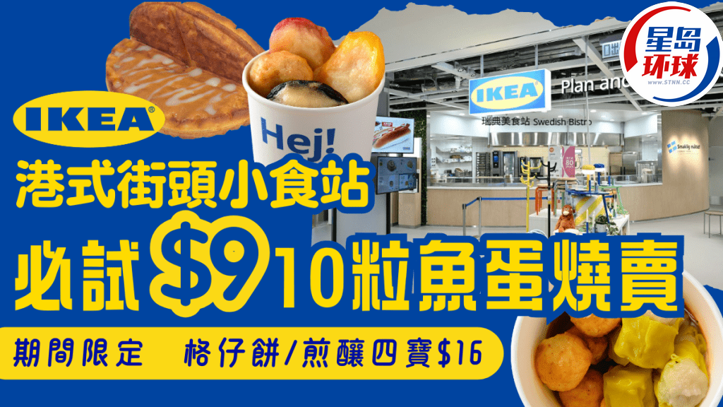 IKEA 宜家家居太古规划及订购中心又有新搞作!农历新年期间(即日起至2月28日)推出期间限定的港式小食站,为大家带来一场“扫街”盛宴。无论是酥脆香浓的格仔饼,还是充满地道风味的咖哩鱼蛋,每一口都满载着香港街头的独特魅力。鱼蛋烧卖价格更低至9港元/十粒,非常抵食!
