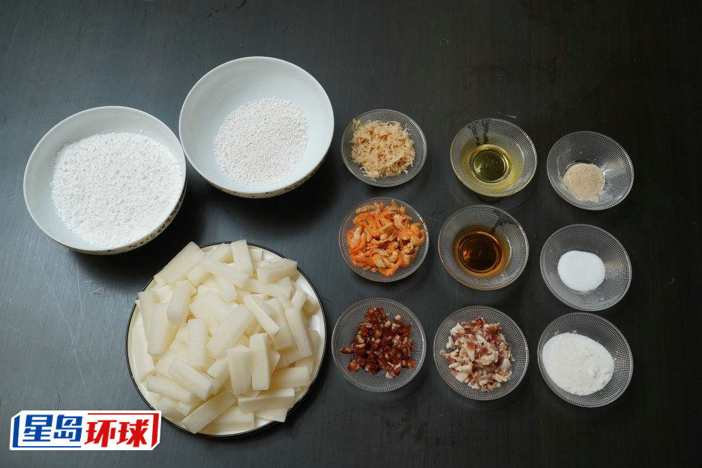 ▲简易版瑶柱腊味萝卜糕的材料简单。
