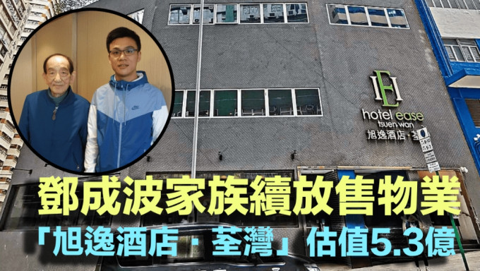 邓成波家族持续放售物业,最新为葵涌圳边街15至19号“旭逸酒店.荃湾”,现于市场放售,估值约5.3亿。