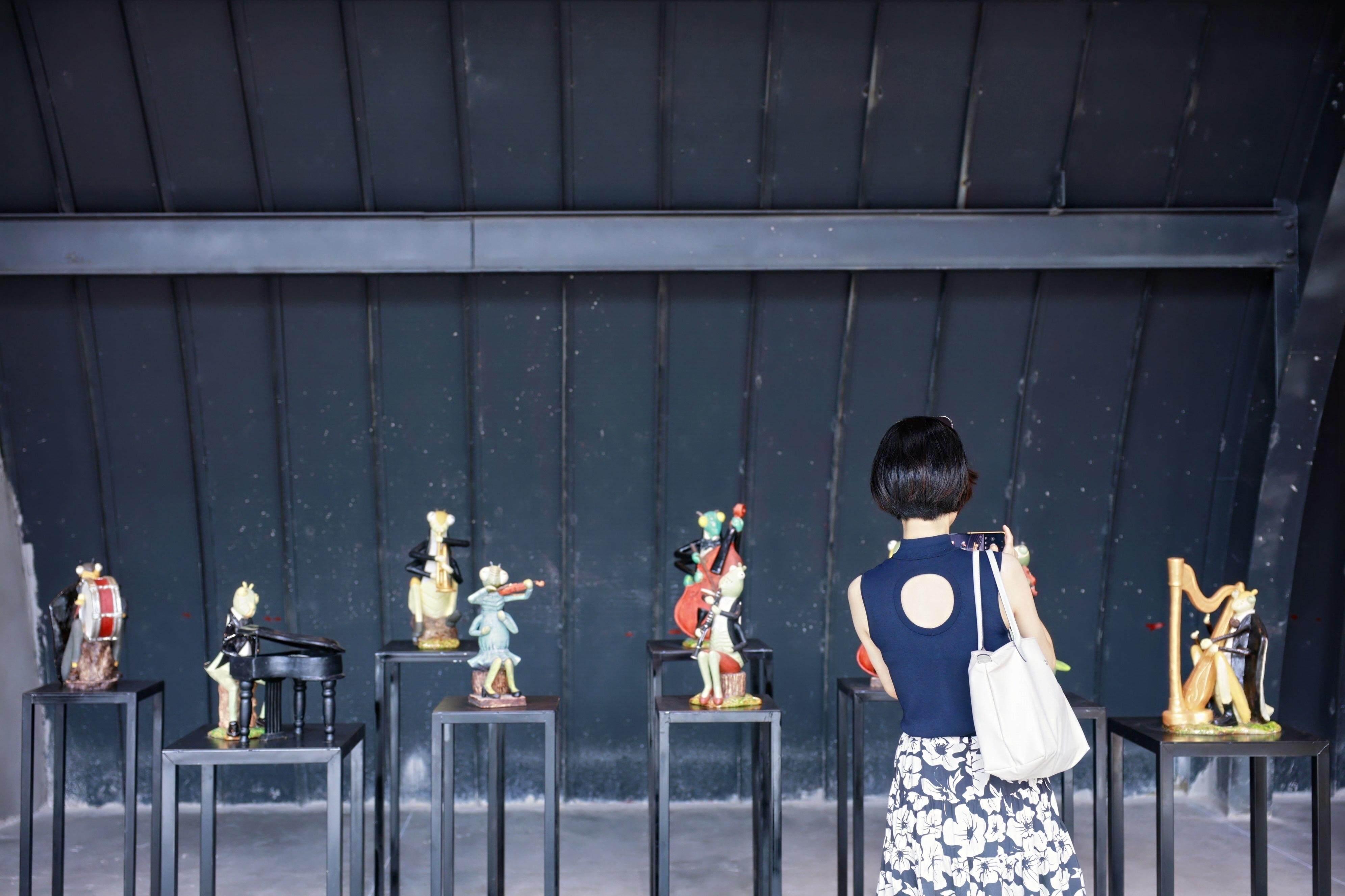 ▲Visitors taking photos of ceramic artworks in the Meitaowan No. 7 Ceramic Warehouse.