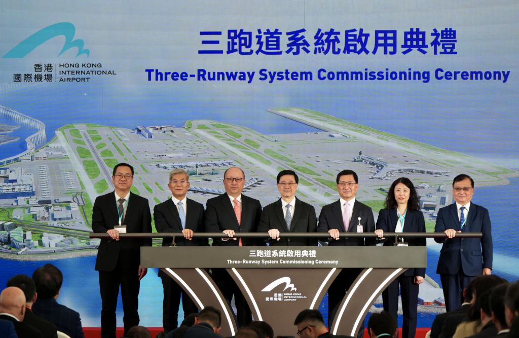 ▲香港国际机场三跑道系统去年11月底正式启用,多名高官出席启用典礼。