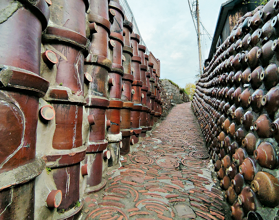 ▲陶器散步道途上的土管坂,两旁由巨大的陶制水管及清酒罈筑成。