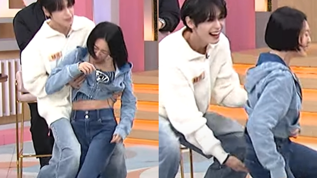 ▲小鲜肉越河和小S互动,则变成袭胸又袭臀。 (图/翻摄自小姐不熙娣 YT)