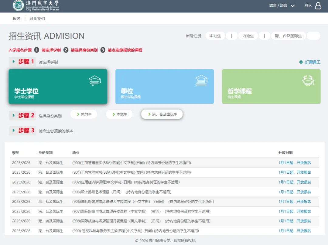 尽管澳门城市大学目前尚未公布最新的内地生招生资讯,但我们可以从港台国际生的招生资讯页中看到,持内地身份证的学生不能再通过DSE及IB等外地公开试成绩申请报读了。