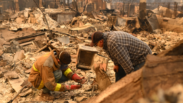 ▲美国洛杉矶7日惨遭野火肆虐,所见之处都成废墟。(图/美联社)
