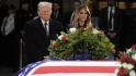 综合美联社与《华尔街日报》报道,卡特停灵国会供民众瞻仰遗容后,军方9日早为棺木盖上国旗,将灵柩从国会山庄运往国家大教堂,期间现场曾鸣放21响礼炮。克林顿、小布殊、奥巴马、拜登与特朗普5人放下政治歧见,一起送别卡特,加拿大总理杜鲁多等外国元首也出席了仪式。
