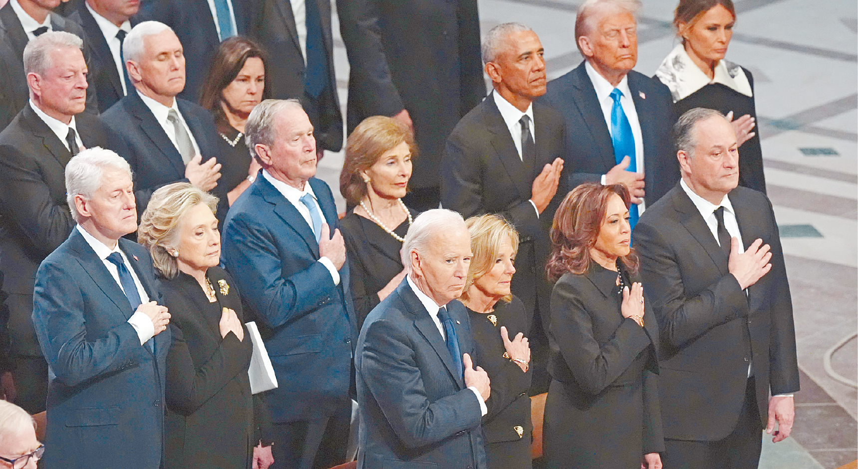 ▲已故前总统卡特举行国葬,5位现任及前任总统罕有齐聚华盛顿国家大教堂,一同向卡特致敬。 美联社