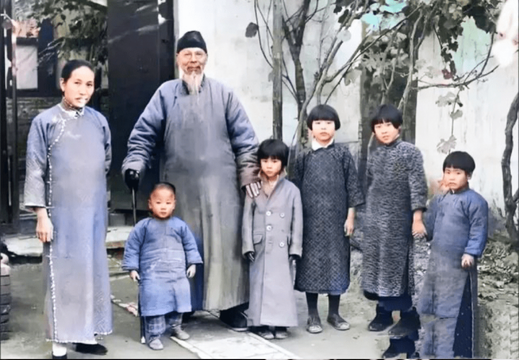 ▲齐白石和妻子儿女在北京的合影,左侧妻子胡宝珠。