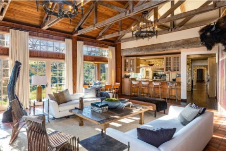 从照片中可见,梅尔·吉布森的豪宅在被野火焚烧前,布置的相当舒适温暖。房屋装潢以乡村与自然风格为主,大量木质元素贯穿整个空间,大面积的落地窗让自然光线充满整个客厅,墙上的野牛头标本,以及古铜色的吊灯,增添不少自然的原始感。