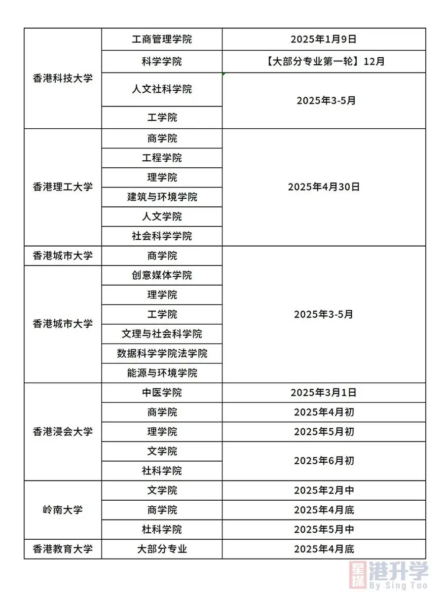 以下是香港八大院校的申请截止时间,大家可以看看自己心仪的学院最晚何时截止申请。