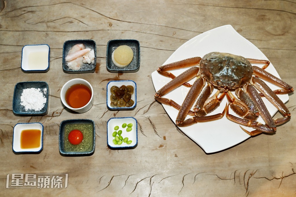 松叶蟹(约800克) 1只 | 木鱼汤 500毫升 | 味醂 10毫升 | 毛豆 20克 |