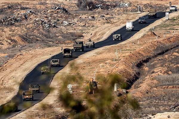 ▲加沙地带北部,以色列一支军队车队沿着道路行驶。(资料图)