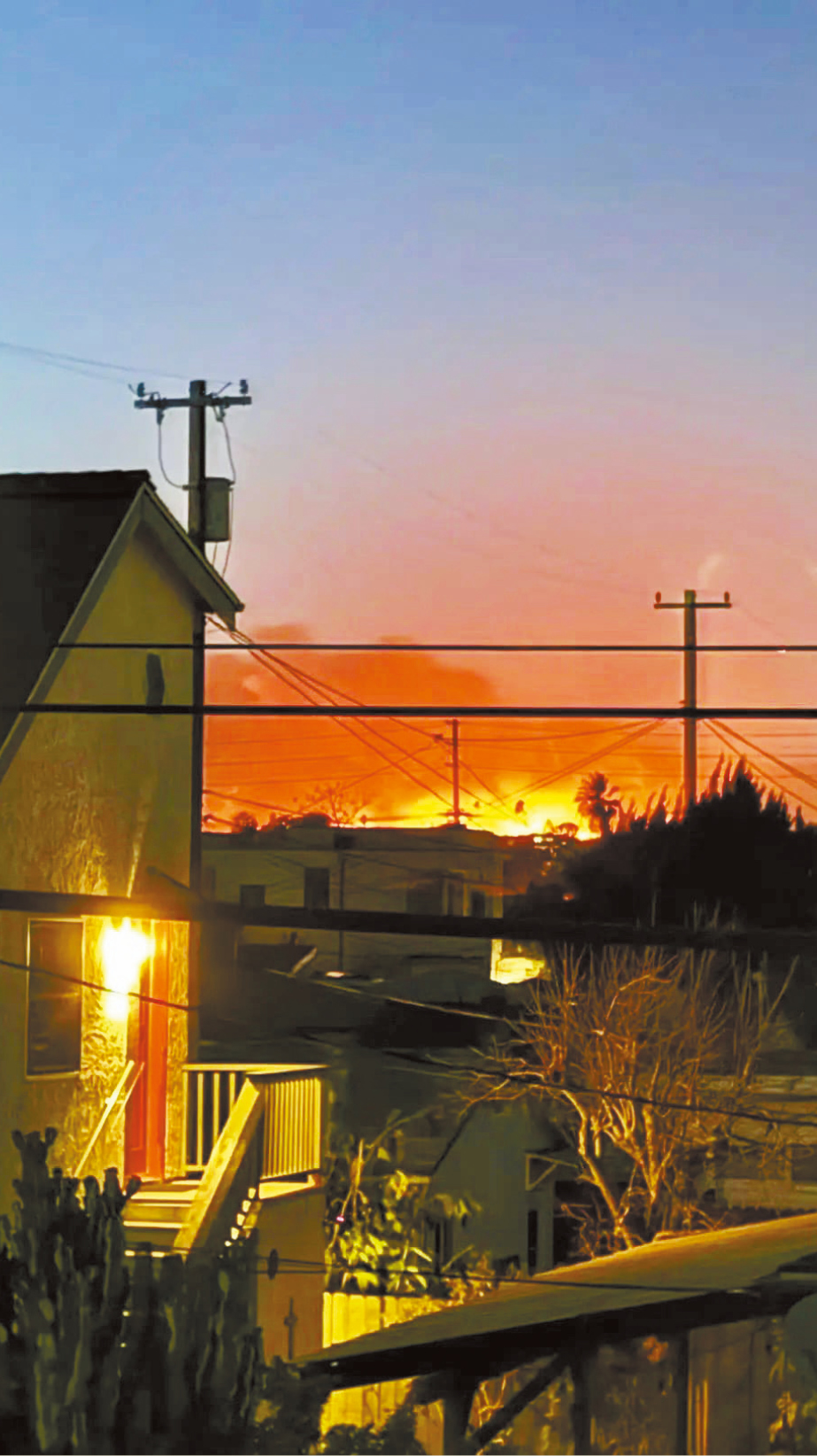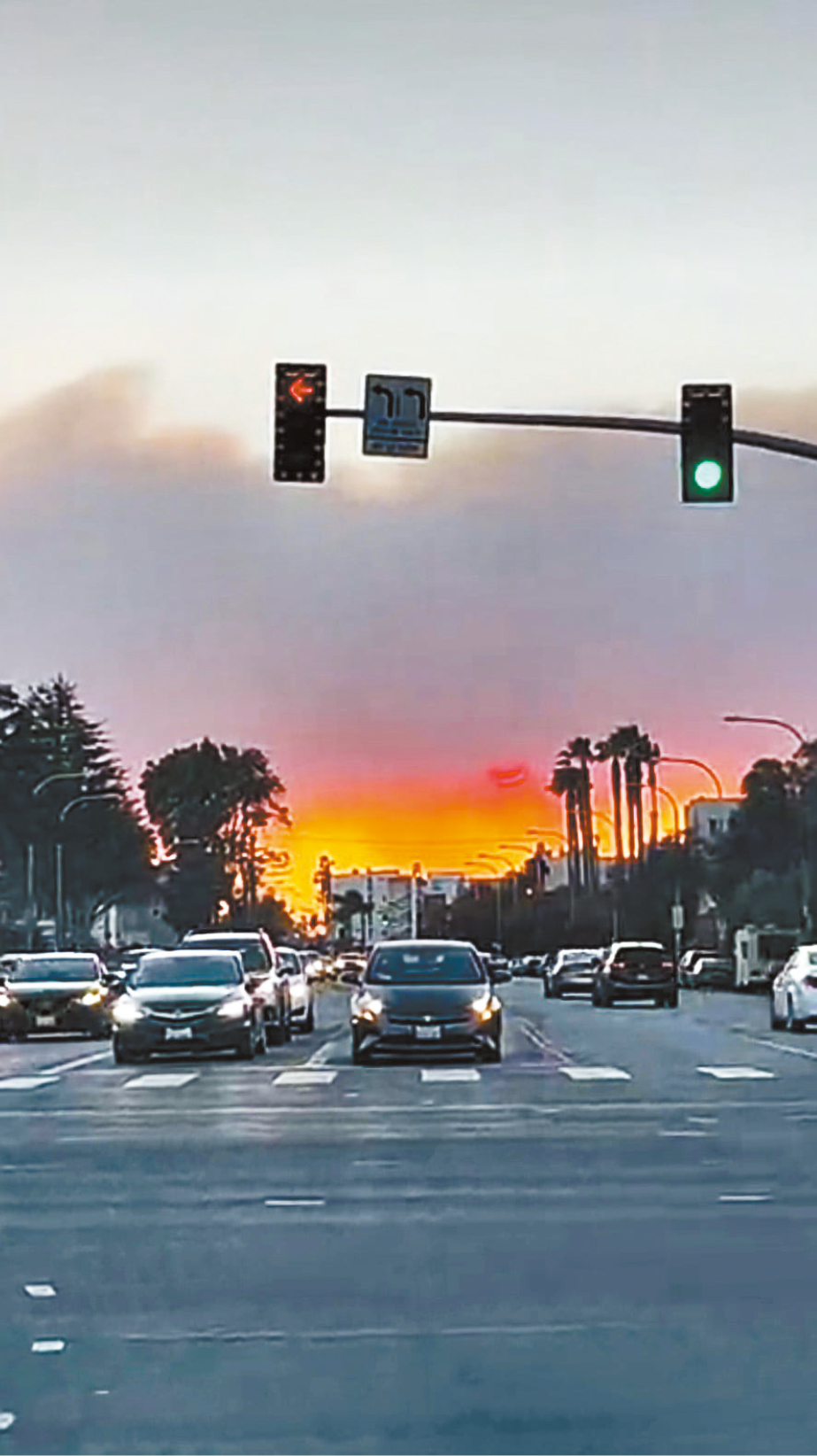 ▲火灾第一天,华人居民Kevin从圣莫尼卡家中看到的景象。受访者提供