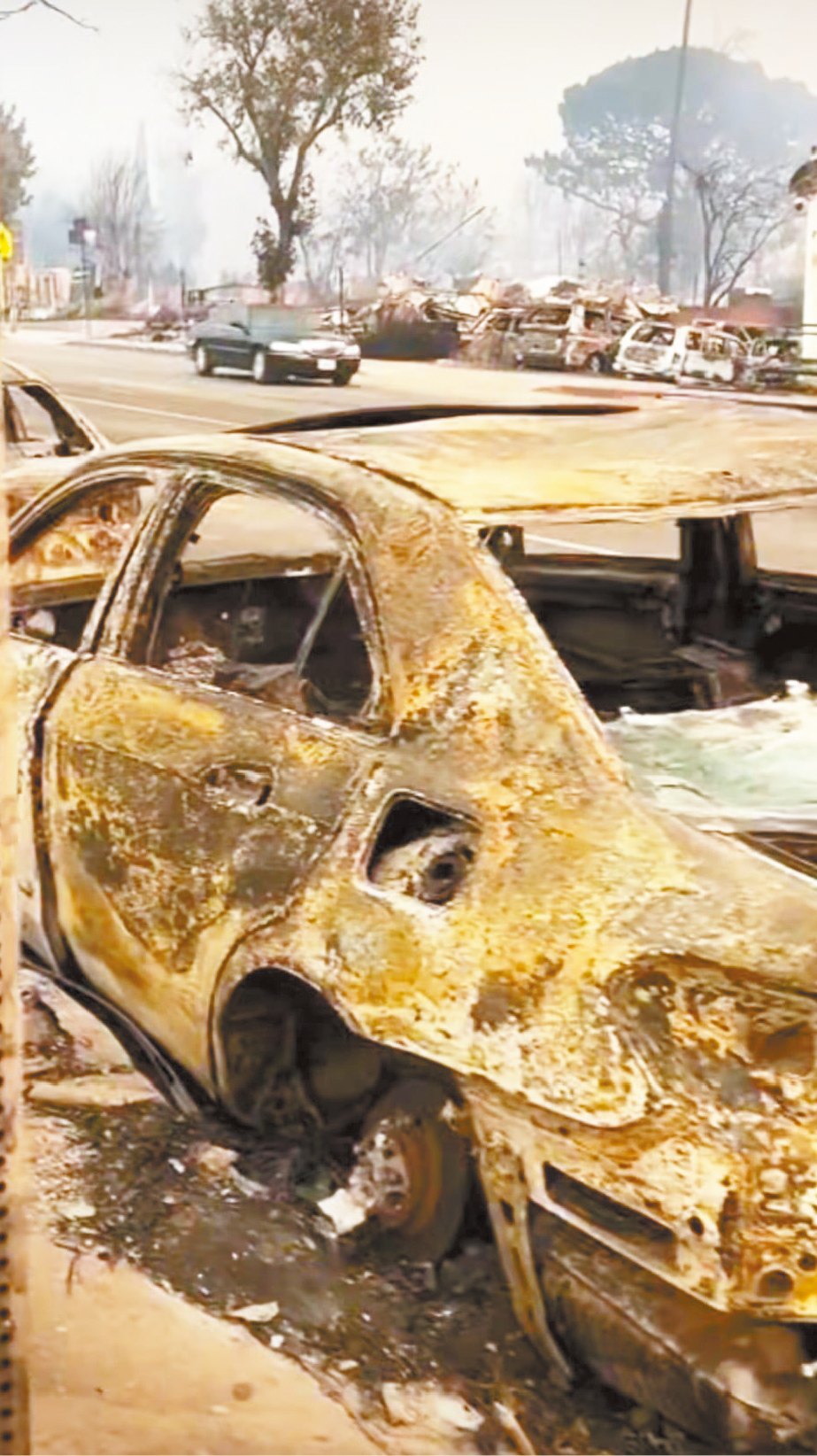 到了第五天,Kevin表示,山火区域已经没有浓烟,空气中还是不断有细小的灰烬飘落。“看起来基本上得到了控制。希望一切赶快过去。但是帕利塞兹基本上全毁了,现在是一片废墟,最近几年将处于鬼城之中,水电设备、城市基本设施、马路重建等等,恢复工作至少需要5-10年,希望新的帕利塞兹会更好。”