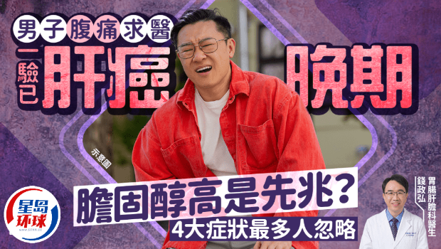 【肝癌/癌症】胆固醇过高勿轻视,有机会是癌症警号!一名80多岁男子因腹痛求医,确诊肝癌晚期,肿瘤已15cm大!医生指,肝癌有4种早期徵兆最容易被忽略,该男子胆固醇偏高也是先兆之一。