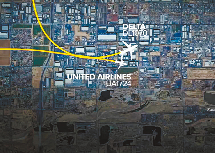 凤凰城机场几乎酿成严重空难,达美航空(Delta Airlines)与联合航空(United Airlines)的两架客机准备降落期间,几乎在半空相撞,距离最近时只有1000余英尺。消息透露,涉事两架飞机的驾驶舱都曾响起警报,机师紧急爬升避过一劫后,在航空交通管理员指引下安全降落。