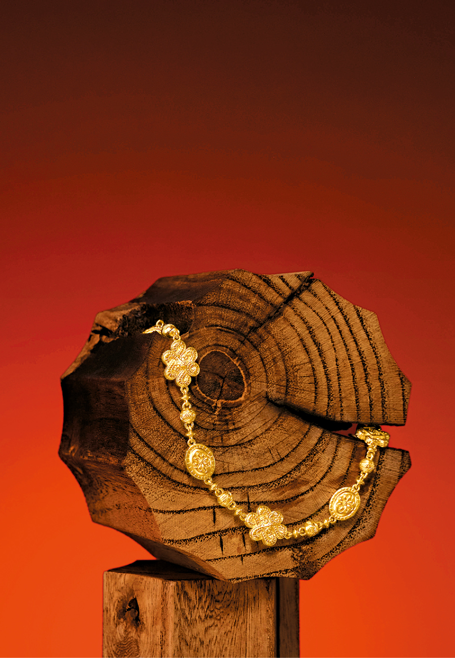 ▲细心留意,可见这条来自传承系列的手链上,足金图腾正有灵蛇盘绕成中国传统绳结的形态。