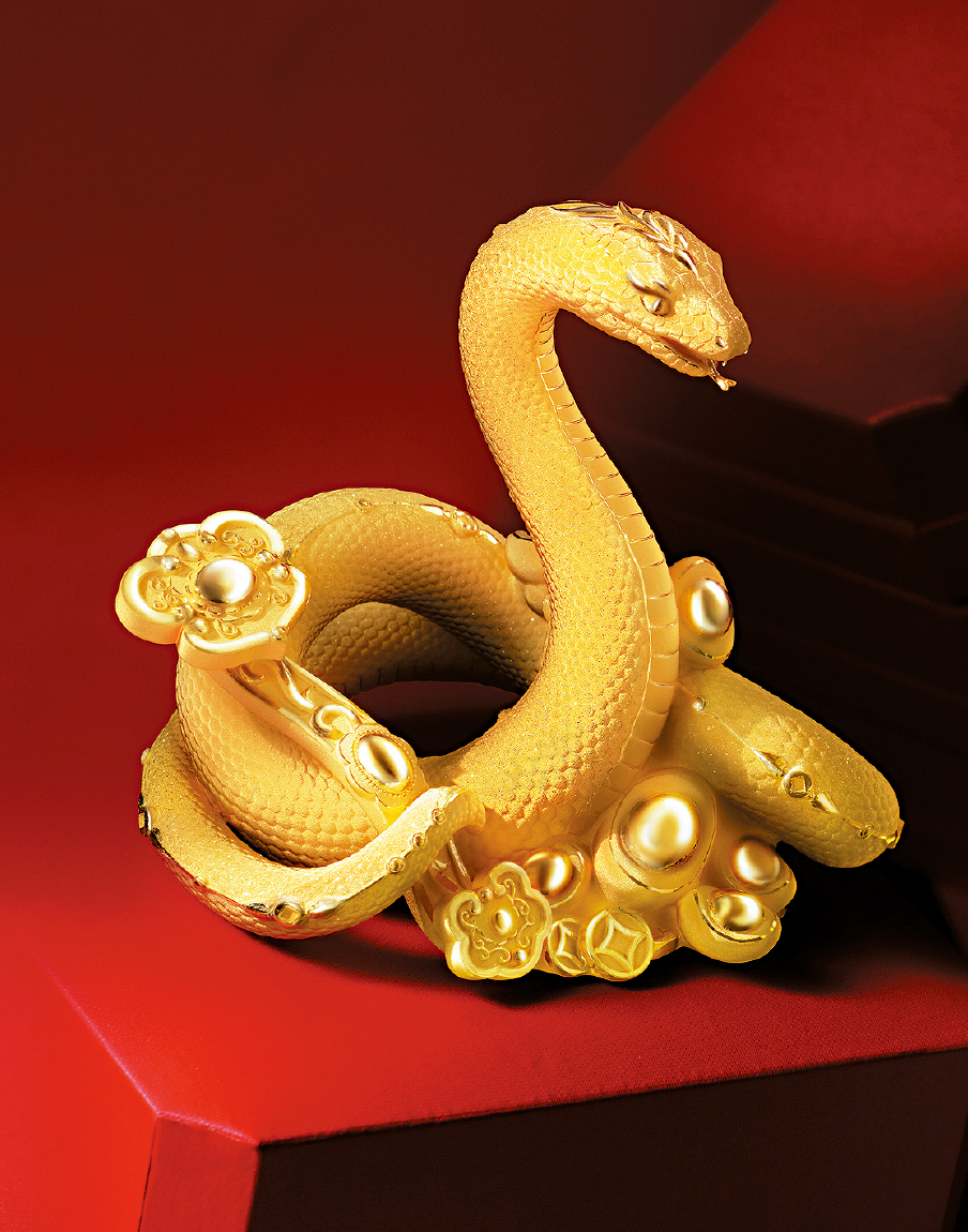 ▲随农历新年而登场的作品,怎少得生肖主角“蛇灵献瑞”的足金摆件。