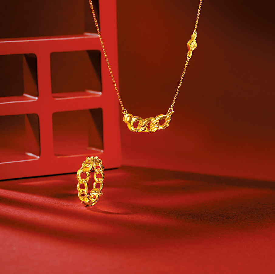 于节庆日子穿戴金饰,源于中国传统,黄金代表财富与地位,正有富贵吉祥之意。 周大福珠宝每年都会为农历新年推出全新金饰系列作品,当中的传承系列新品分别以生肖主角的蛇,以及同样寓意吉祥的题材与图案,例如比喻鲤跃龙门,也取其与如意的“如”字同音的鱼,化身成金饰设计的主角。 另又结合具现代感的创作元素,好像将灵蛇盘绕的形态,幻化成立体漩涡般的抽象造型吊坠,或者左右不对称的鱼儿造型耳环等,务以时尚又迎合日常穿搭的新款金饰,吸引新世代的珠宝爱好者。