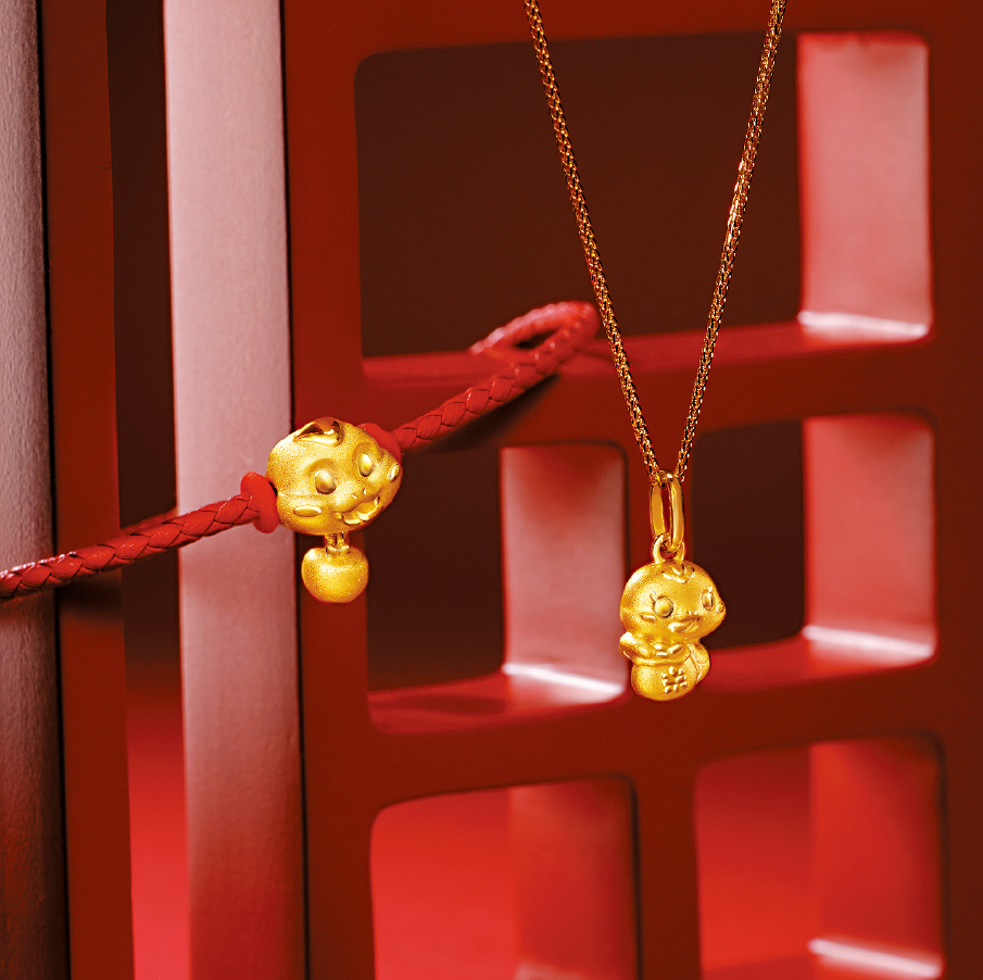 ▲周大福另有推出一系列灵蛇主题的限定金饰,包括造型趣致的足金串饰、吊坠、纪念金牌,以及不同生肖主角的金饰等。