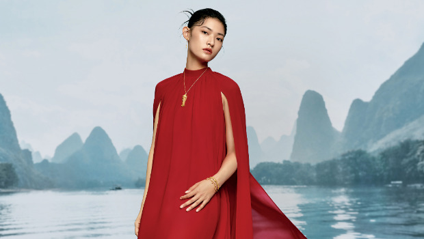 ▲宣传影片中的女主角,身上穿戴周大福最新传承系列的足金镶钻石“鱼裕丰饶”项链及耳环,手腕则戴有设计灵感启发自艺术家韩美林画作的另一传承系列“金蛇献富”足金手镯作配搭。