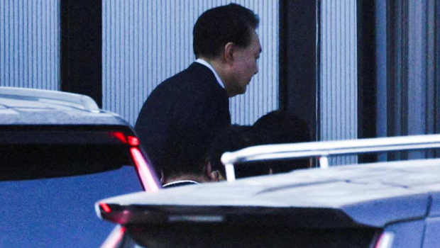 ▲15日被捕的韩国总统尹锡悦抵达公调处。(路透社)