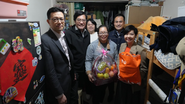 简朴房规管的持份者谘询持续推展。财政司副司长黄伟纶、房屋局局长何永贤昨晚(16日)联同工联会立法会议员吴秋北、郭伟强、东区区议员吴清清等,到西湾河探访两个劏房住户,了解居民居住和生活情况。