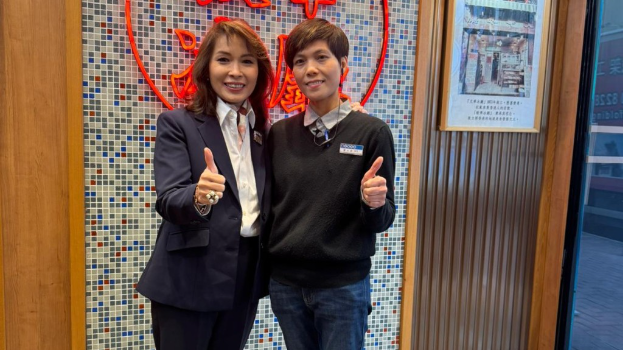 ▲芬姐(右)是太兴集团连锁茶餐厅的女店长,做事细心有礼,获不少顾客力赞表扬。(受访者提供)