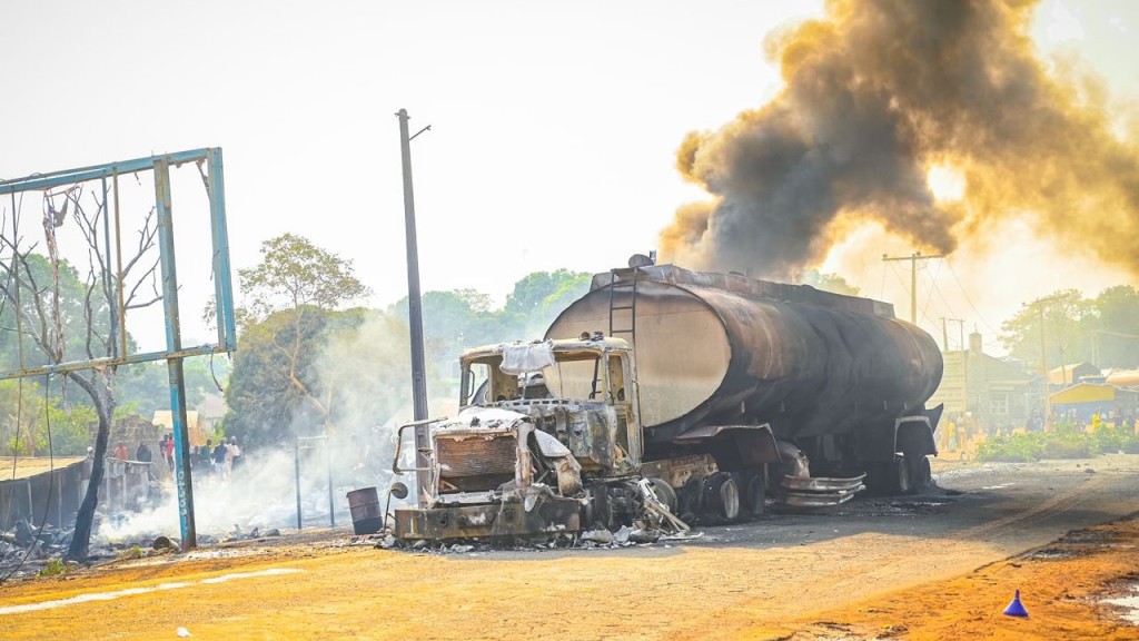▲意外后多名居民检汽油,期间发生爆炸致多人死亡。图片来源:X@Chiefpressngs