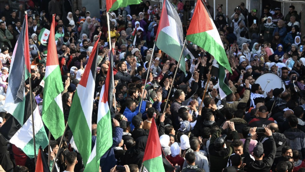▲叙利亚民众在大马士革集会,庆祝以巴停火。 新华社