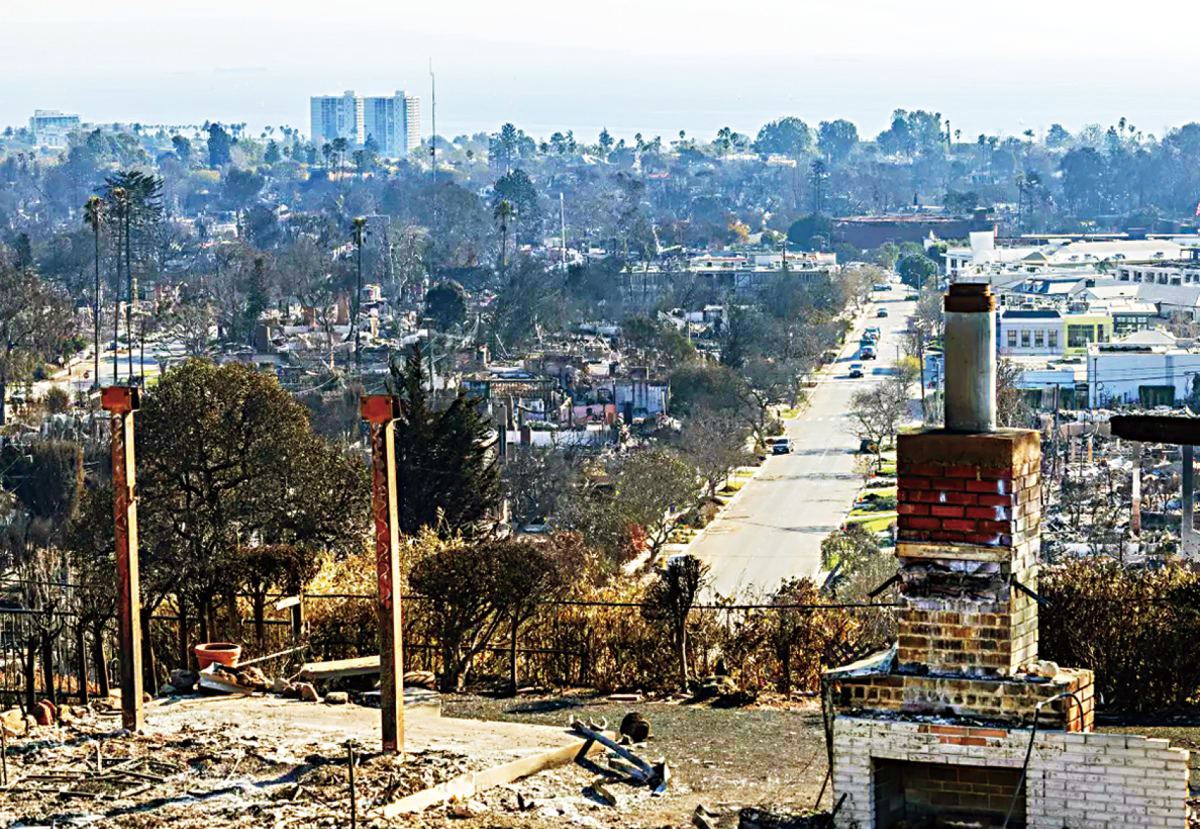 ▲洛杉矶县帕利塞德山火灾区还未整理,圣塔莫尼卡再传红旗警报。洛杉矶时报
