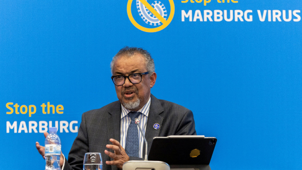 ▲2024年10月20日,世界卫生组织(WHO)谭德塞在卢安达基加利会议中心举行的马堡病毒疫情记者会上发表演说资料照。(路透社)