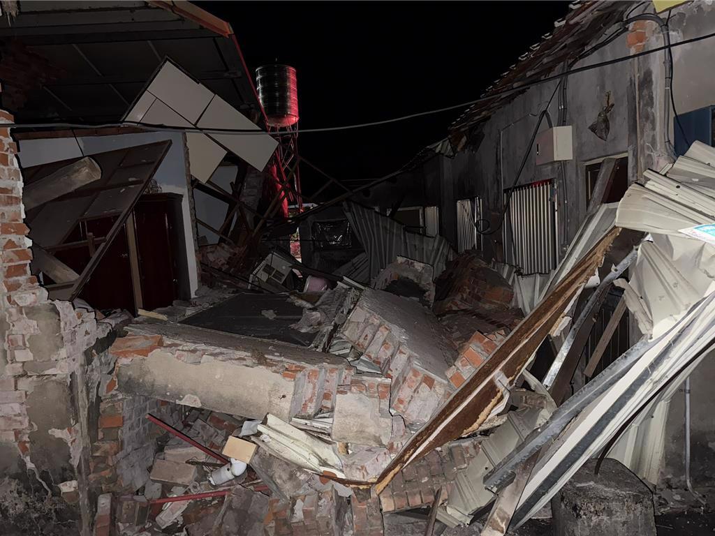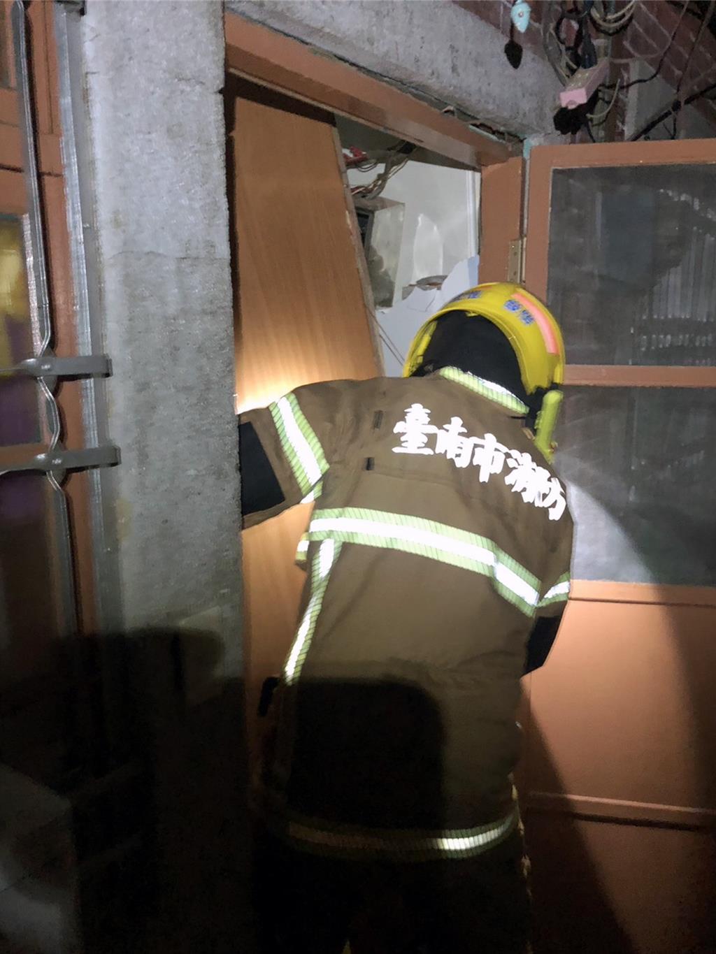 ▲21日凌晨零点17分左右,嘉义县大埔乡发生芮氏规模6.4的强震,造成距离震灾不远的台南市楠西区平房倒塌3人受困,经台南市政府消防局派员抢救后,已于凌晨1点05分脱困后送治疗。(台南市消防局提供)
