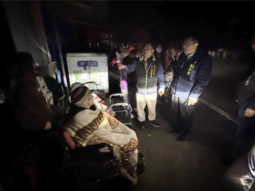 ▲余震不断,楠西区灾民害怕不敢进屋,不少年长者欠缺保暖衣物,裹着单薄的毛毯在路边发抖。