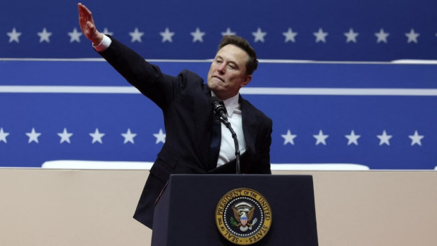 ▲亿万富豪马斯克20日在美国总统特朗普的就职典礼上做出右臂伸直敬礼的手势,被质疑像是“纳粹礼”。(路透社)