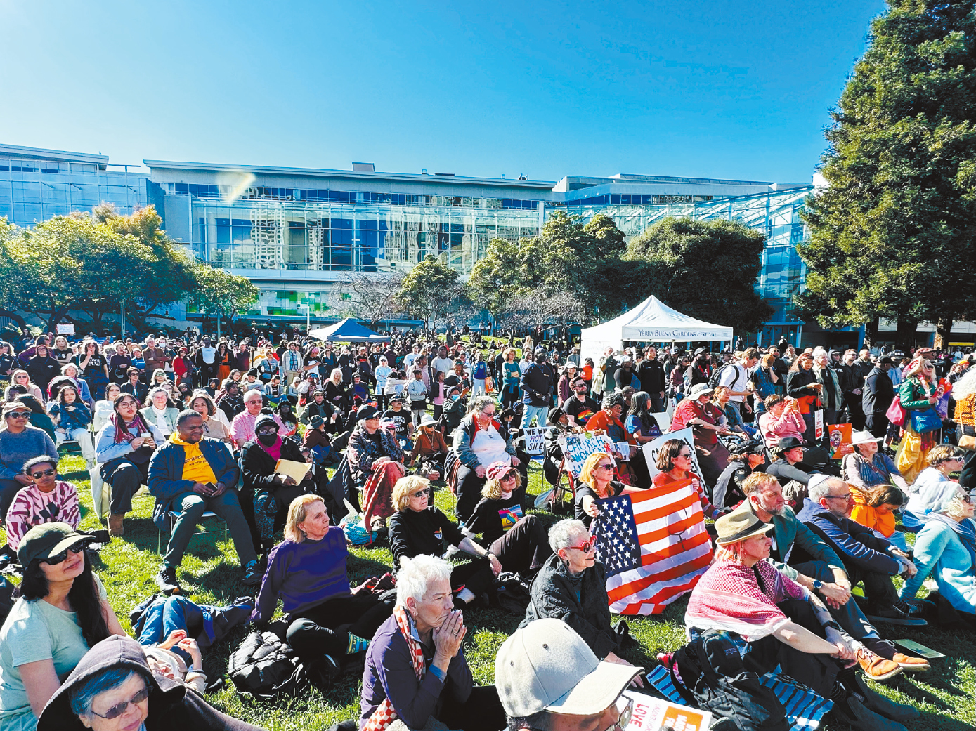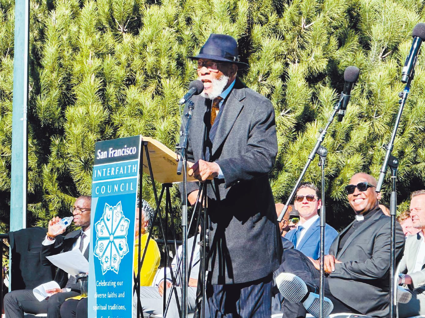 在大游行终点芳草地花园的演讲上,也没有人提及特朗普的名字。全美有色人种协进会旧金山分会主席布朗牧师(Amos Brown)在演讲中不点名地抨击特朗普和“宗教右翼”,“他们是小偷,不是讲真话的人”,“他们是仇恨者,而不是帮助者”,引起了台下阵阵欢呼和掌声。