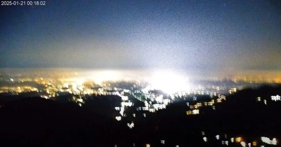 ▲阿里山的闭路电视疑拍到地震光。 阿里山风景区管理处