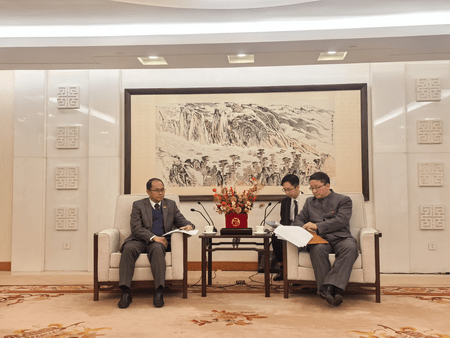 ▲外交部亚洲司司长刘劲松约见缅甸驻华大使丁貌瑞。