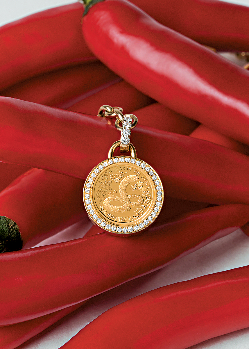 ▲香港高级珠宝设计师Chantel Shafie创立的同名品牌推出全新24K纯金蛇年钻石徽章/$36,000(不含项链)。(Chantel Shafie Jewellery)