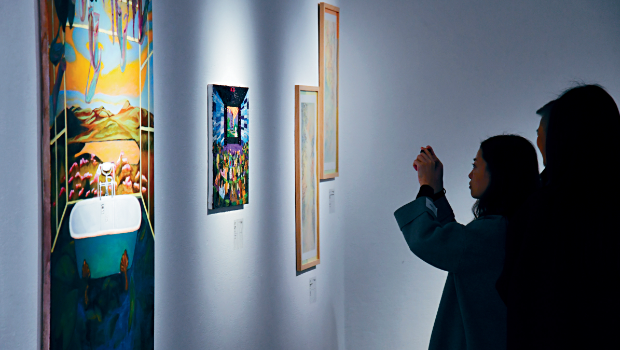 ▲林伟而的作品《喝采》灵感来自他参与香港艺术学院举办的油画课程。