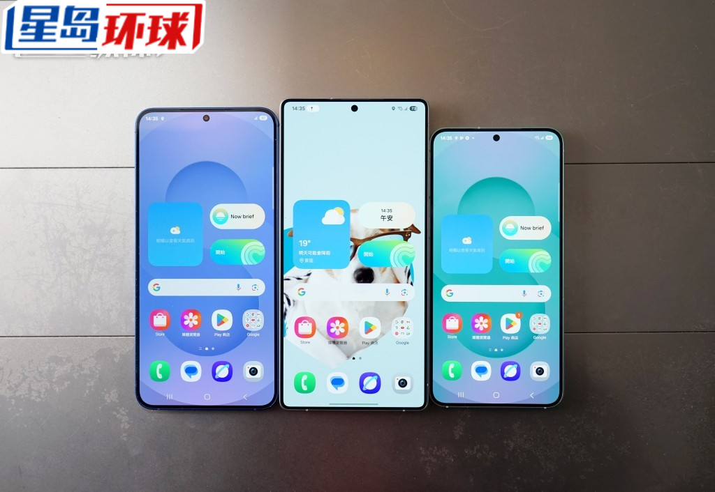 ▲Galaxy S25 Ultra(中)改用6.9吋屏幕及圆角机身,设计风格跟S25(右)及S25+(左)再次统一。