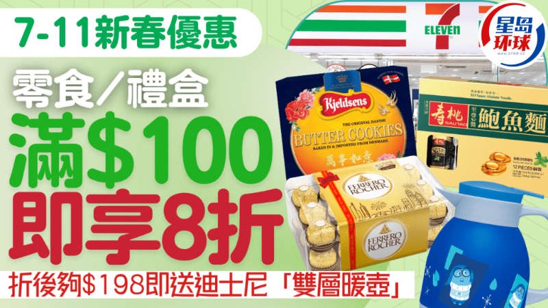 7-11新春赏一:新年礼盒或指定零食满$100即享8折