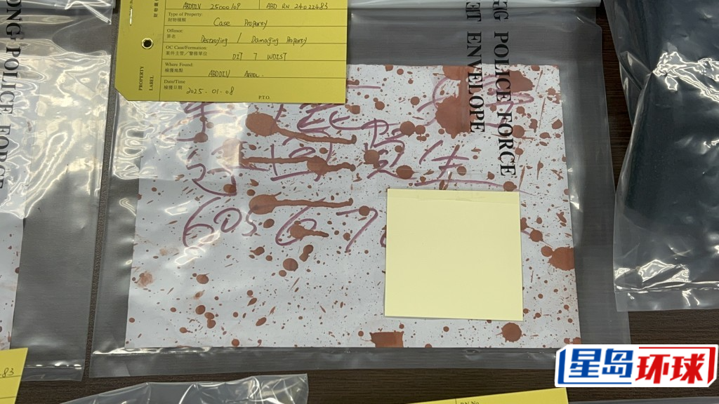 西区警区刑事调查队第七队案件主管黄颂轩督察讲述破案详情时表示,去年12月到今年1月中期间,警方接报在香港仔以及西环分别七个不同屋苑大厦、不同单位,住户因为欠债问题其单位被淋红油。